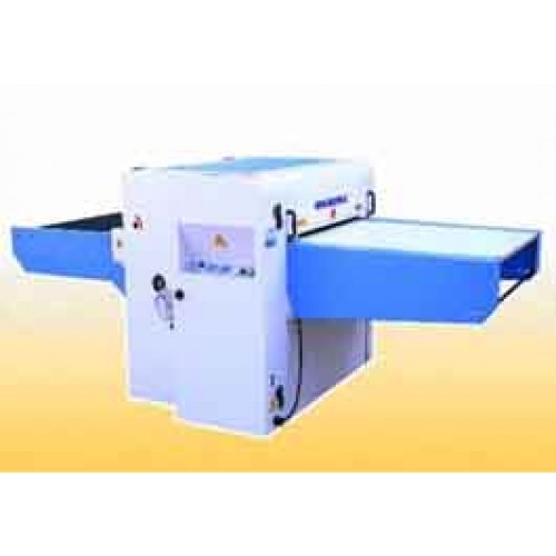 Высокопроизводительный дублирующий пресс проходного типа. Ширина лент 90 см. Сила давления до 5 кг/см2 и электронное регулирование температуры позволяют на превосходно [равномерно и прочно] соединенять основную ткань с флизелином или прочими клеевыми материалами. Охлаждение склееных элементов молниеносно их стабилизирует и тем самым сохраняет первоначальную форму. Вращающиеся шнеки предотвращают приклеивание клеевых материалов к лентам пресса